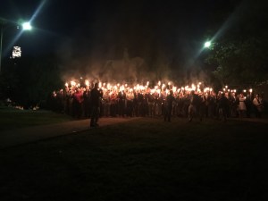 I cannot let a nightmarish seeming coincidence pass without noting it….. (….sounding the alarm?). Dangerous reality is moving at a troubling, troubling speed. Just yesterday, in writing a quick post on Facebook. I softened a reference to “torchlight processions”, seeing the reference as absurdly alarmist for the present moment — and less than 36 hours later, white supremacist Richard Spencer is reported as leading a torchlight procession in Charlottesville, Virginia.