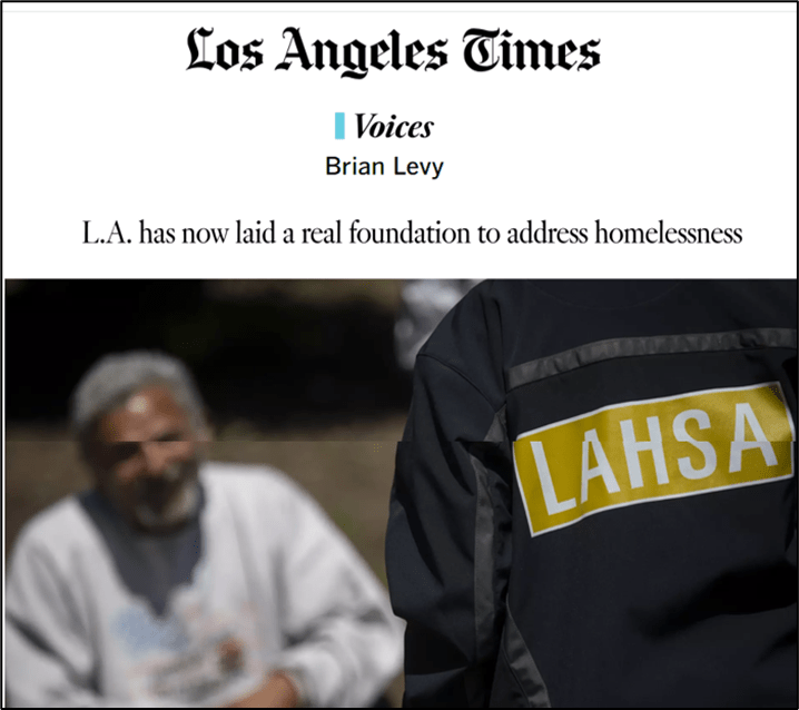The people of LA identify homelessness as the region’s number one crisis. The successful recent effort to  collaboratively set and adopt ambitious and achievable  goals for 2030 is a major milestone. Success in meeting these goals  could rebuild the  public confidence in local government that has eroded over many years. To be sure, it’s still early days, and there is much uncertainty.  But the stakes couldn’t be higher. If LA’s effort to combat homelessness can stay on track, there would be a golden opportunity  to flip the narrative –  from being a poster child of  the failure of good intentions to address urgent social challenges, to becoming the face  of a renewed and effective 21st century progressivism.