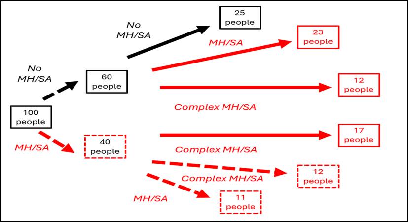 At first sight, Los Angeles’ challenge  seems straightforward: end homelessness for the 70,000 or so people  -roughly  50,000 of whom live on the streets –  identified as homeless in recent iterations of the region’s annual point-in-time (PIT)  count. However, as Figure 1 illustrates for 2023, the PIT count (a “stock”)  captures only a moment in an ongoing and much larger flow: in that year 103,000 people accessed  LA County’s homeless services. [Note that, while the analysis that follows draws principally on data from 2022/23, newly released data reports a 30% (!!!) increase to 133,000 in the number accessing these services in 2024/25.] Between 2020 and 2024, close to 300,000 people (3% of LA County’s population of 10 million) accessed the county’s homeless services at least once.