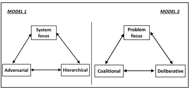 In model 1, participation plays a role on the margin, an add-on of sorts to its top-down approach to getting things done. This add-on can take one or all of a variety of forms: